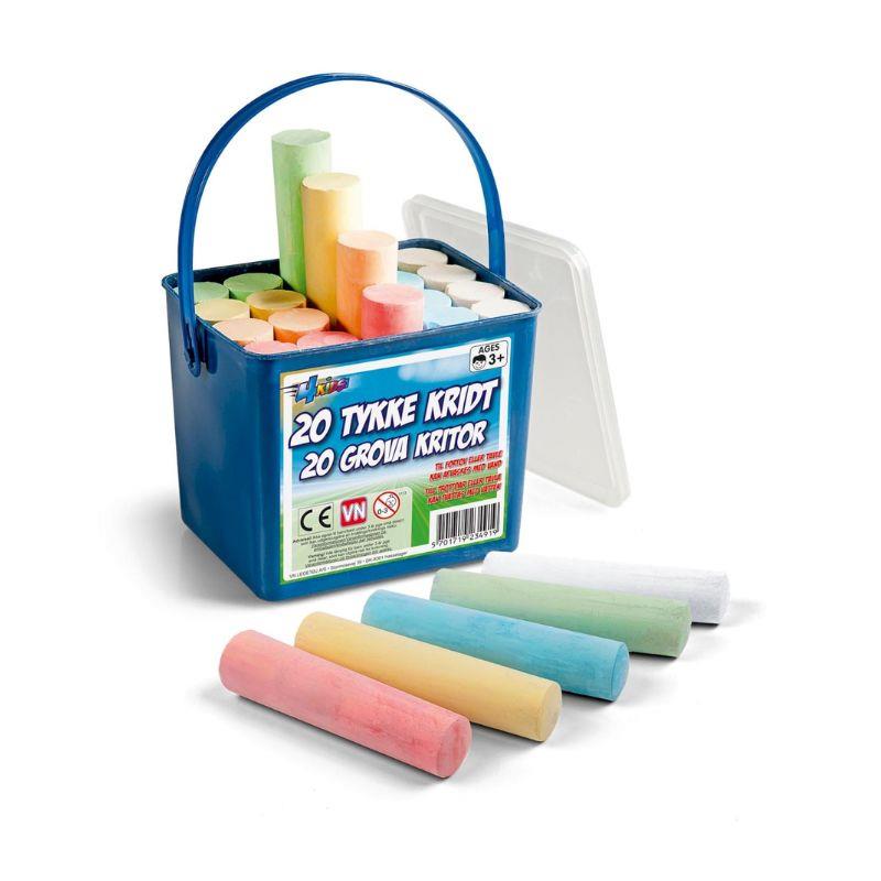 Inviter til kreativ leg i indkørslen eller på legepladsen med denne praktiske spand fra 4-Kids. Med 20 store, robuste kridt i en række flotte pastelfarver er der rig mulighed for at tegne alt fra fantasifulde monstre til klassiske hinkeruder. De tykke kridt er skabt til at modstå ivrige børnehænder, og deres størrelse gør dem lette at holde om for selv de mindste kunstnere.