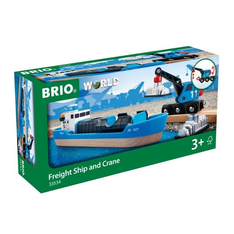 BRIO World Containerskib indeholder 4 dele. Nu kan du lege på havet! Med liften med magnet, kan du flytte dine containere over på skabet og sejle afsted.
