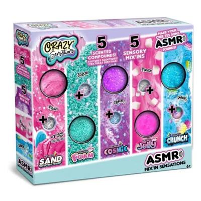 Lad børnene udforske deres sanser med Crazy Sensations ASMR Mix'in Sensations 5-pack! Dette spændende sæt tilbyder fem forskellige teksturer og dekorationer, som kan blandes og matches for at skabe 100% tilfredsstillende resultater. Det er en sjov aktivitet for både børn og voksne, der giver mulighed for at mærke og udforske en verden af duftende slim, magisk sand, gelé og meget mere. Oplev en sansefyldt leg, der stimulerer kreativitet og nysgerrighed!