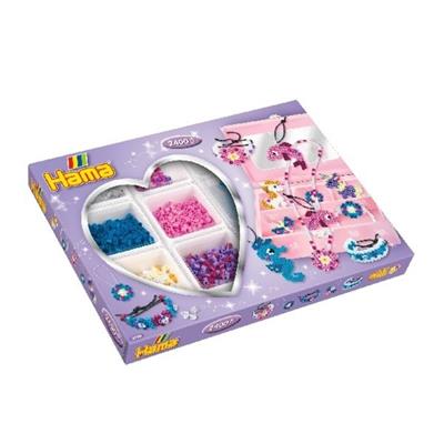 Hama Midi aktivitetsæske indeholder intet mindre end 2400 perler i sorterede farver. Med perlerne kan du lave smykker og perleplader. Der medfølger 1 medium sekskantet perleplade, 4 Hama Gems, 1 vokset bomuldssnor, 1 elastiksnor, motivark, strygepapir og 1 opbevaringsæske med låg.