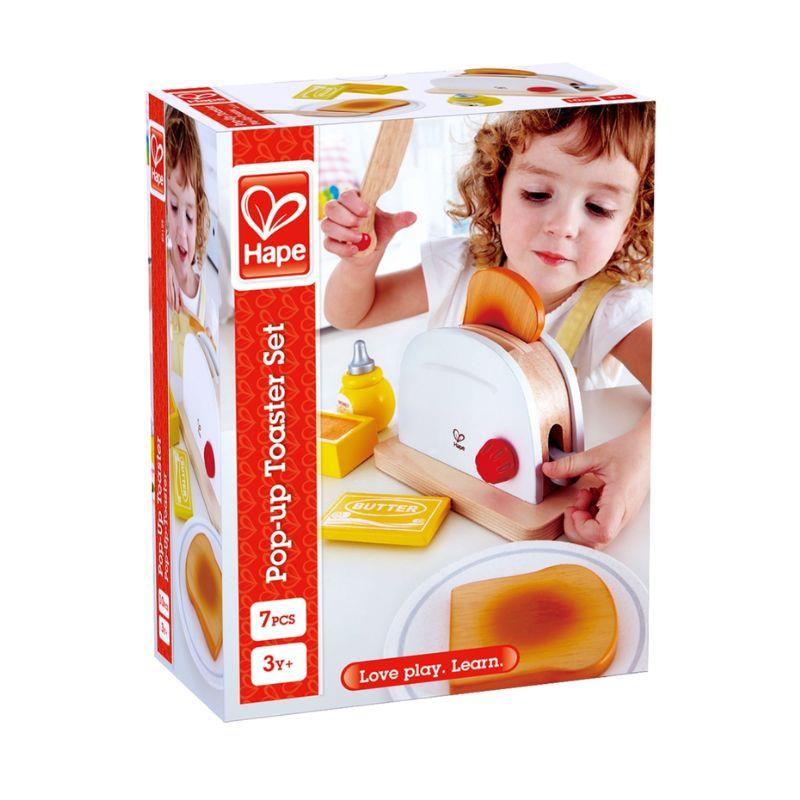 Start dagen med leg og varme smil med Hape Pop-Up Toaster Set! Dette trælege-sæt bringer morgenmaden til live med en pop-up toaster, ristede brødskiver og tilbehør som smør, honning, kniv og tallerken — alle dele lavet til små hænder, som kan “riste” og servere med stor entusiasme. Det er perfekt til rolleleg, hvor fantasi og hverdag flettes sammen, og børn lærer simple handlinger som at lægge brød i, trykke og vente på “pop”.