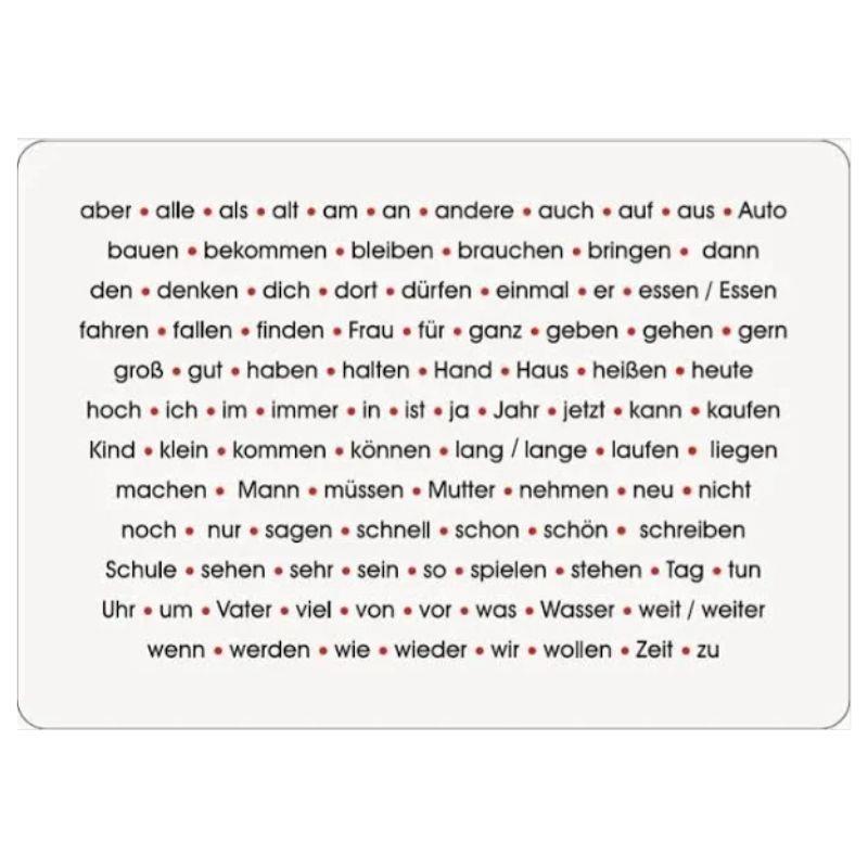 Læringsunderlaget støtter dit barns læring i hverdagen, når i tegner, laver perler eller spiller spil. Mulighederne er mange med læringsunderlaget som er designet med tyske ord