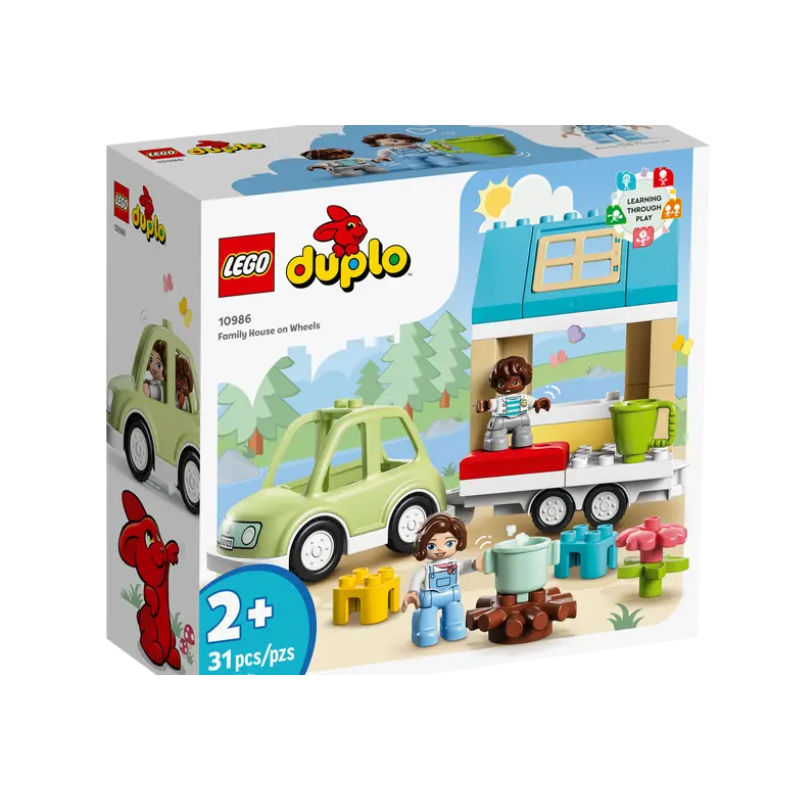 LEGO DUPLO Familiehus på Hjul er til de eventyrlystne børn! Her kan de udspille forskellige lege, som tage udgangspunkt i ferier med familien - f.eks. at sidde omkring et lejrbål og fortælle historier og drikke varm kakao.