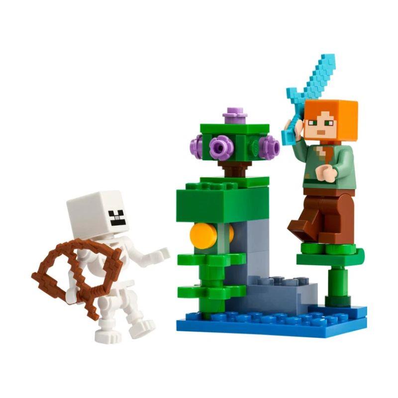 Dyk ned i Minecraft-universet med LEGO® The Lush Cave Fight sættet.