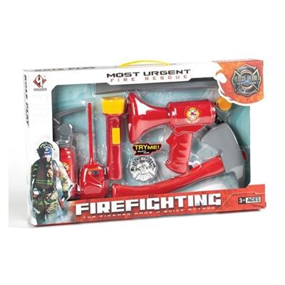 Alt hvad du skal bruge til at lege brandmand. Dette lille brandmandsæt der indeholder økse, megafon, koben, lommelygte og meget mere. Megafonen og lommelygten bruger batterier (ikke inkluderet). I alt 8 dele i hård plast.