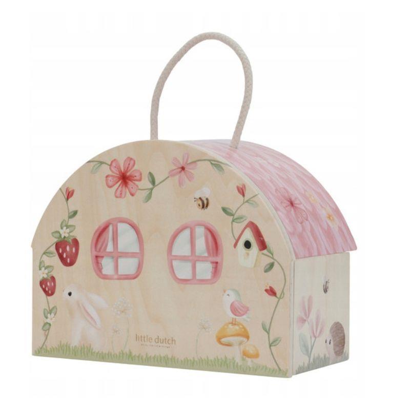 Giv børnenes fantasi frit spil med Wooden Dollhouse – Fairy Garden fra Little Dutch. Dette fortryllende dukkehus i FSC-træ, dekoreret med blomster, feer og hyggelige detaljer, folder leg og magi ud i alle hjørner – perfekt til kreativ leg for børn fra 3 år.