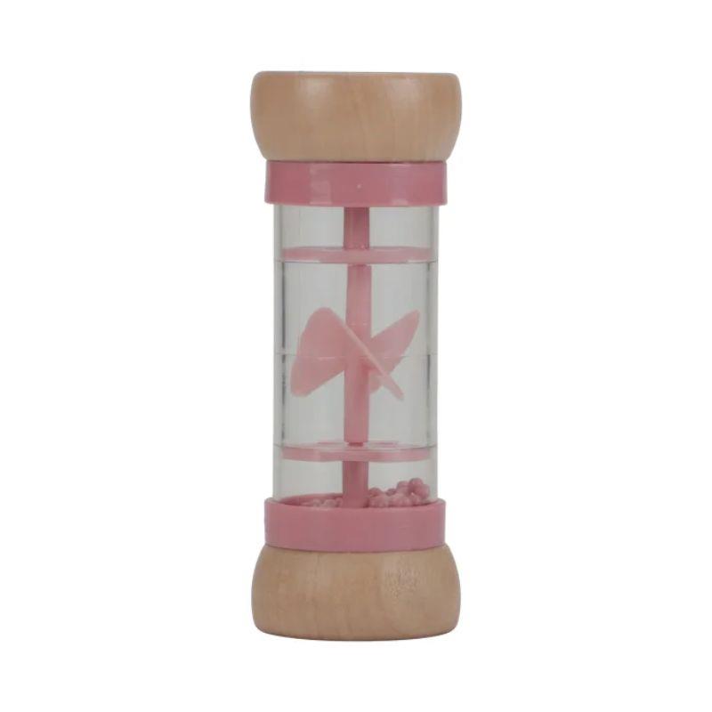 Mærk regnen – uden regnen! Little Dutch Rain Rattle – Fairy Garden inviterer babyer til beroligende lyde og tidlig sansestimuli. Når kuglerne triller gennem røret og drejer propellen, skabes en blid “regneffekt” lyd — alt sammen med blomst- og sommerfugleillustrationer fra den magiske Fairy Garden-serie.