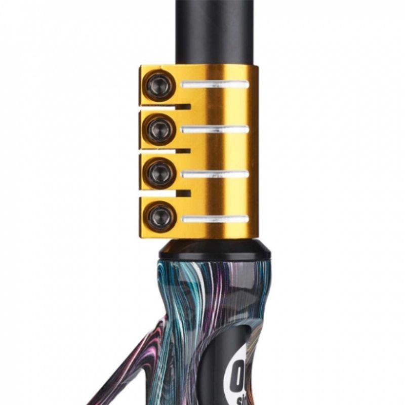 Dette seje løbehjul fra Outsiders er sort med seje farvede stribede detaljer og med flotte guld dele. Løbehjulet er designet til, at du kan bruge den til fede stunts og timevis af sjov.