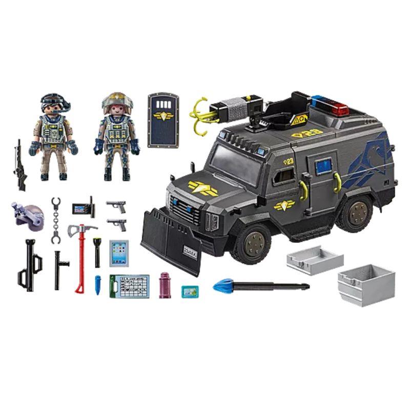 Bliv klar til mission med Playmobil City Action SWAT-ATV! Køretøjet har lys, lyd og masser af realistiske detaljer, der gør politimissionerne ekstra spændende. Med to figurer og masser af udstyr er der lagt op til actionfyldt leg i børneværelset.