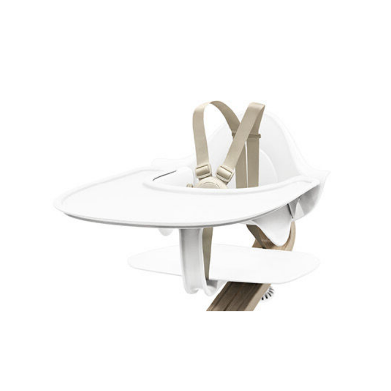 Dette praktiske bakkebord giver barnet mulighed for at deltage i familiens måltider og aktiviteter i et åbent rum, hvor højstolen forvandles til en lille plads med bord. Det er en enkel proces at fastgøre bakkebordet til Nomi baby sædet ved blot at klikke det på plads.